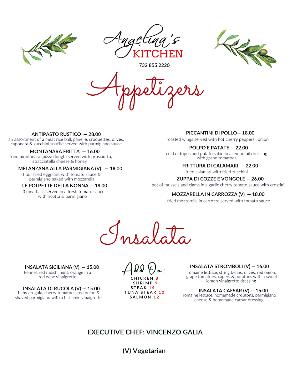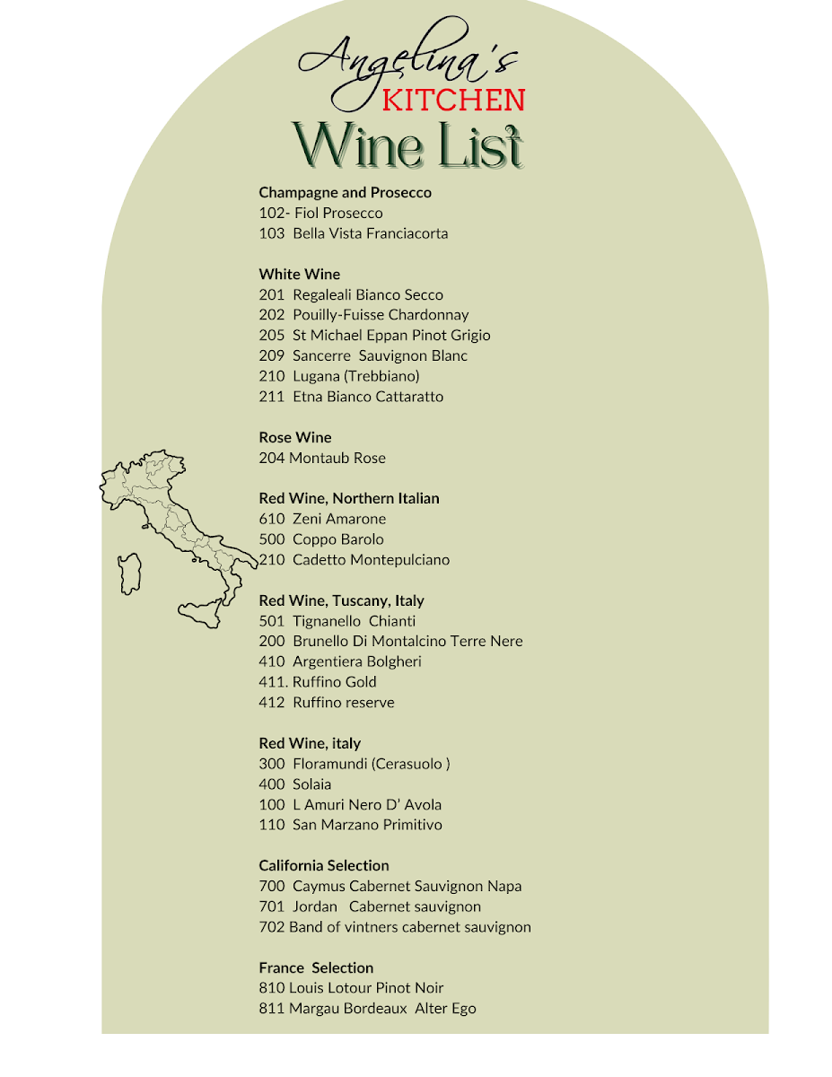 Angelina's Kitchen, Bar and Restaurant Menu (Update 2025)