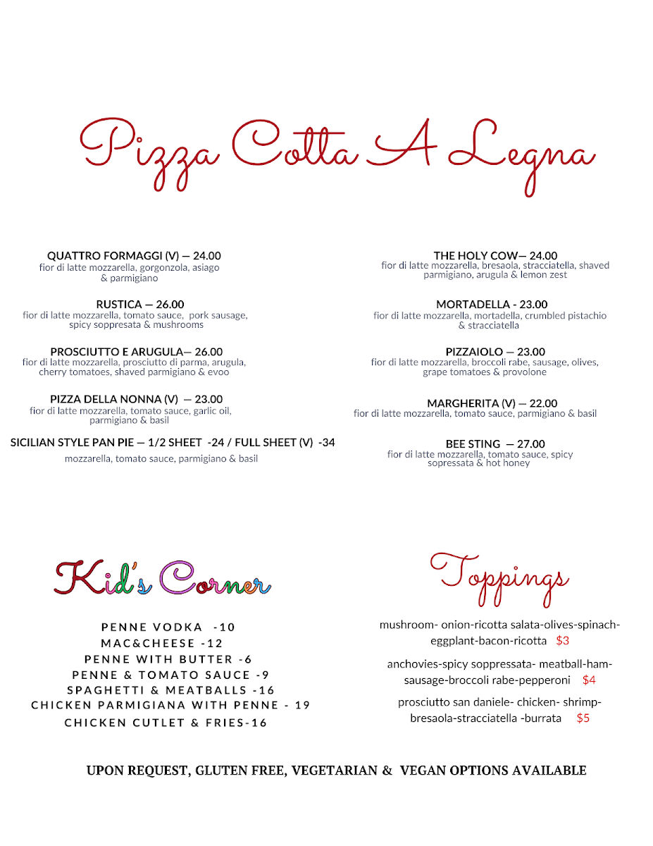 Fior di Latte Mozzarella, Broccoli Rabe, Sausage, Olives, Grape Tomatoes, & Provolone